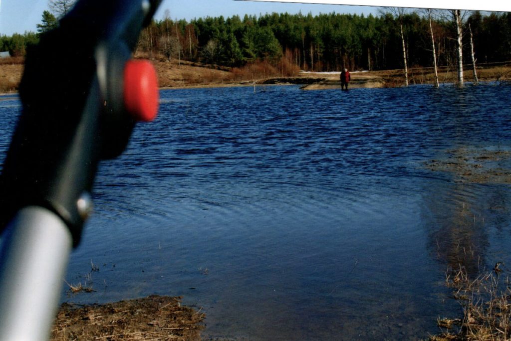 Fiantti (suom. huom.: Vapun vihreä Pikku-Fiat) oli hyvä kulkemaan tulvassa. Ajoi vain kieli keskellä suuta, eikä liian kovalla vauhdilla. Kuopat ja ojat pelottivat, ettei niihin ajaisi. Sitten kun vesi tuli konepellille asti ja sisälle autoon, ei enää voinut ajaa. Auto jätettiin sitten tienvarteen ja matka jatkui kahlaten tai veneellä. Soitin ennen matkaan lähtöä Ullalle, että milloin oon perillä, ja Ulla souti hakemaan. Ei ollut kännyköitä silloin, oisivat olleet kyllä kivoja olemassa.